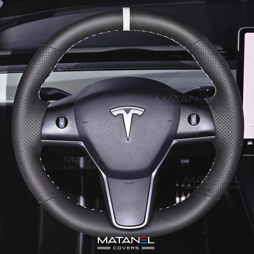 Tesla steering wheel cover Matanel Covers Genuine Leather black