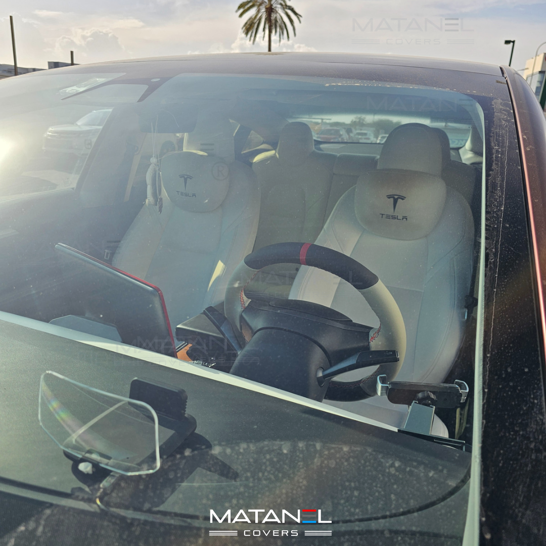 Tesla steering wheel cover Matanel Covers Genuine Leather black & light gray
